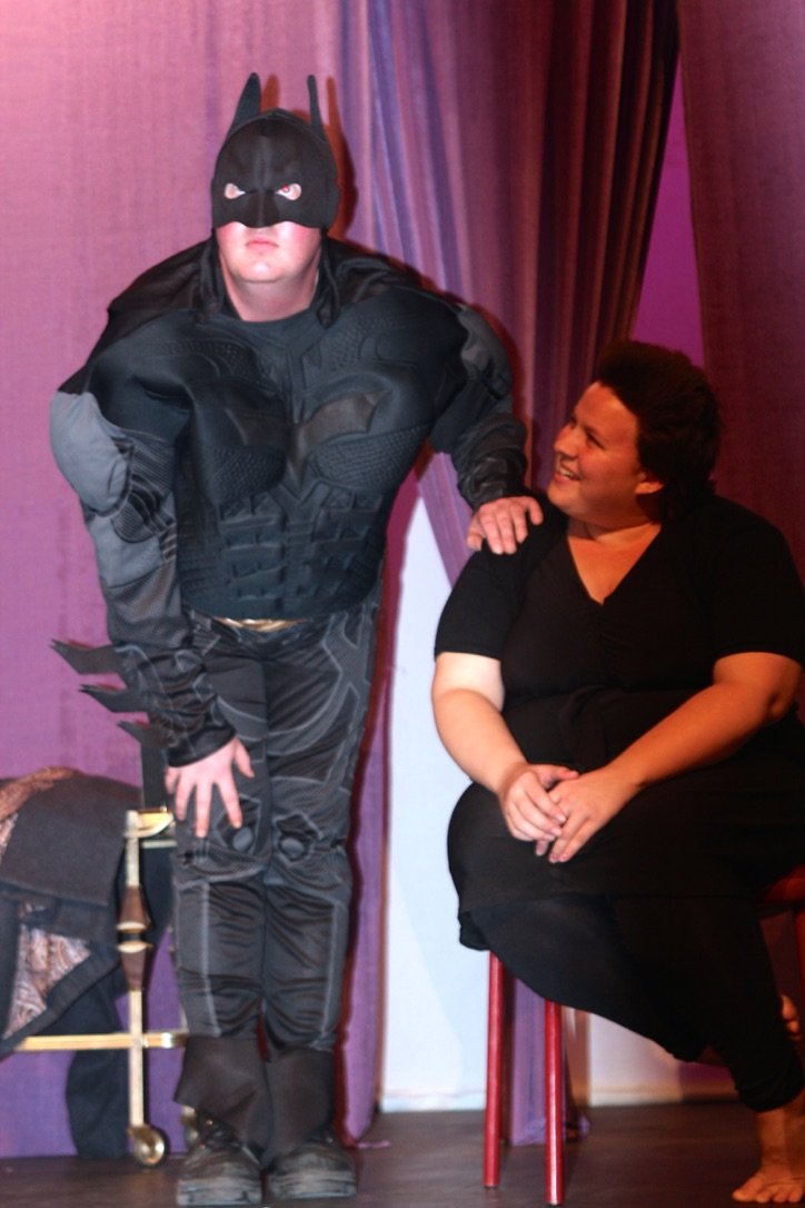 Holy theatrical endeavor, Batman! After the rural town of Merredin, Australia held a contest for playwrights to craft a script set in their town I was brought in to cast and direct the show with local actors. With two weeks of rehearsal time and a set that needed to go up and come down in a single day, this was no small feat. I was pregnant with my first child, and I cast Emily O’Donnell, a nursing mother, as the leading lady. I believed (and still believe) that we need to make space for mothers to contribute to theatre, and it was my pleasure to make space for an actress as passionate and hardworking as Emily. She pushed a stroller between lines, and her baby crawled in and out of our rehearsal space, and I wouldn’t have had it any other way. David Pettit (also known as Kissy Kyssandra) brought comedic chops to the role of a man obsessed with Batman, and David and Emily together pulled off the impossible. Bravo, you two!